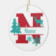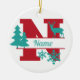 N Monogram Initial Christmas Holiday Tree Ornament