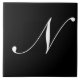 N Monogram Initial White on Black Ceramic Tile