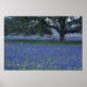 NA, Texas, Devine, Oak and blue bonnets Poster