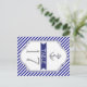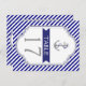 Navy blue, white stripes and anchor nautical wedding table number postcard. A stylish striped pattern design with navy blue, white diagonal stripes, an anchor with a blue heart and rope and your text in a frame with a banner. Modern yet with a vintage look in a sense. You can change background and text color choosing from over 200 colors from Zazzle color chart. This classy design is a completely customizable template and is part of a wedding set perfect for a summer wedding.