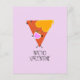 A spicy hot red tortilla chip cartoon with puckered lips, and nacho cheesy dripping heart hair. Says he's (or she's) Nacho Valentine. I bet you could make this valentine yours though.
