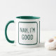 I was thrilled this came out so well. It is a very attractive mug with the colored handle and interior. Being able to personalize it was easy! It was designed for an end of the year thank you gift to the special recipient. perfect. Text lines up perfectly parallel to the top edge of the mug.