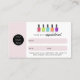 A hand drawn illustration featuring beauty nail accessories. A perfect modern style design for manicure and pedicure themed for beauty business branding. A cute design ideal for anyone who loves beauty themed illustrations, manicures, pedicures, spa themes, and business branding for estheticians. A beautiful way to book your customers next appointment with this professional pink business logo appointment card. Client appointment card can be personalized to your text, QR code, social media handle and business logo.
