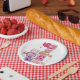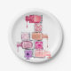 Fun paper plates illustration features stacked bottles of nail polish in a variety of colors