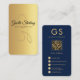 Nail Technician Monogram Navy Blue Gold QR Code Business Card