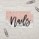 An elegant modern, stylish nails business card with elegant script hand lettering style typography in white on a faux rose gold glitter ombre on modern white marble background. If you need any customization, don't hesitate in contacting me.