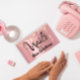 The glitter and rose gold elements are simulated in the artwork by the Creator. These elements will not be used in the making of this product.