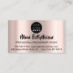 The design is a perfect blend of modern flair and classic beauty. The rose blush color palette speaks of romance and grace, while the glitter adds a touch of glamour and excitement. It’s a visual representation of the services you offer—sophisticated, stylish, and always in vogue. The elegant typography ensures that your name and details are easily readable, making it simple for potential clients to reach out and book their next appointment.