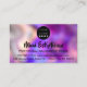 In the vibrant hues of violet and pink, this business card whispers tales of creativity, passion, and a keen eye for beauty. The elegant script logo isn’t just text; it’s a signature, a promise, and a splash of elegance that says, “Yes, I am the artist you’ve been searching for.”