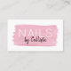 This modern and artsy business card is perfect for any nail technician and beauty salon. It features a hand-painted bubblegum pink watercolor brushstroke on top of a white background and includes your business information, logo, and pink background on the back. It's an excellent way to advertise and spark new business. The design includes a black handwritten signature script typography. It's elegant, cool, unique, trendy, minimalist, and stylish; the perfect card to attract customers.