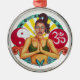 Original art by Sandra Gale on a round ornament displaying an inspirational design with the sign for ohm, yin-yang, and others with a beautiful woman meditating. A unique and colorful design of spirituality that's perfect for everyone.