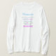 I love this shirt. I had written to the artist asking her if this picture was available on a shirt, and she wrote me back telling me where I could find the shirt. These shirts can be custom made to have a different saying. I loved this saying and went with it. The artist wrote me back later to tell me that she had seen my order go through. How's that for service? Pretty special. It's just as displayed. Perfect!