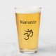 Simple Namaste glass with a black om symbol design. With black lettering, you can customize with your own message. Great for adding a touch of spirituality to your entertaining.