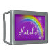 Named rainbow belt buckle, currently reads, Natalia or personalise with the longer name of your choice (up to 7 letters only). Design inspired from the many beautiful rainbows here in Victoria, Australia. Item designed exclusively by Sarah Trett.