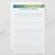 Painting of abstract diamond shapes of blue, green, and purple, on a yellow background is printed across the top of stationery, and has a placeholder to add a name and/or message. The body of the stationery is lined for easier writing.