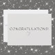 A simple yet charming all occasion 4.5"x6.25" congratulations flat card with sender's name and address on back. Easily change or remove the text using the Template provided. The front and back background is a platinum color. White envelope is included or mark "none" for reduced price. Also available in many sizes. Highly rated and excellent print quality. See "About This Product" for more information. High school or college graduation, engagement, weddings, news of pregnancy, new baby, anniversary milestone, first home, promotion, retirement celebrations.
