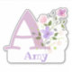 Personalise any item with a Name and Initial with Floral Design Cut-Out Sticker. Example name is Amy.