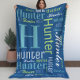 Warm and cozy blanket with personalized monogram and name cloud word art design.