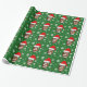 Fun Christmas Football Wrapping Paper with his NAME, JERSEY NUMBER or Monogram or Delete it. Football with Santa Hat surrounded by stars and snow flakes. You can CHANGE the white text and green background colors to ANY COLORS.