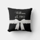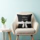 An elegant white bow and ribbon set against a striking black background, featuring a personalized name and wedding year.