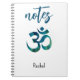 Name, Aqua Bird Feather Pattern Om Symbol Notebook