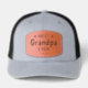 Bold "Best Grandpa Ever" and subtle name on a 2mm leather patch is featured on this grey and black classic trucker hat. Easily change all the text and name to make it yours using the Template provided. Choose from three solid colors and 12 combination colors. See "About" for more information and care. Grandparent's Day is September 13, 2026.