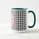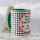 A classic black and white buffalo check pattern with red and grey circle frame and mini Christmas trees. "Merry Merry Christmas" and name are in a black modern font. Easily change text and name to make it yours using the Template provided. Use lowercase letters for name if you need more space. This is a large 15oz. combo color beverage mug, choose from 5 colors for inside and handle. A smaller 11oz is also available with a choice of 10 colors. See "About This Product" at side for more information.