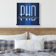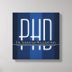 A PhD graduation gift canvas print with a blue and white color scheme. Simply customize the name, add this canvas to your cart, and gift it to the graduate.