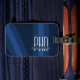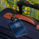 A PhD graduation luggage tag with a blue and white color scheme. Simply customize the name, add this luggage tag to your cart, and gift it to the graduate.