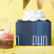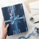 PhD graduation wrapping paper with a blue and white color scheme. Simply customize the name, add this wrapping paper to your cart, and celebrate this major accomplishment.
