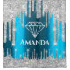 Name Bridal Glitter Drips Gray Teal Blue Diamond Shower Curtain