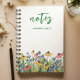Bright colorful watercolor wildflowers border, 'notes' title in modern calligraphy lettering and name are featured on this spiral notebook, journal, planner. Change the forest green title and name using the simple Template provided. This notebook contains 80 pages, college lined in black and measures 6.5" x 8.75". See "About This Product" for more information. HIGH reviews.