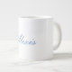 Name Calligraphy Script Plain Simple White Blue Giant Coffee Mug