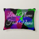 Create a humorous gift for yourself or for a friend with this name change parody geometric accent pillow. This product features front side, first and last name text customization. On the other side of the pillow, switch the first letters of your front and last names to create an interesting new name that you can show off to friends. Enjoy a colorful gift that features a multi geometric fusion circular theme. Purchase the throw and round pillows to complete the set.