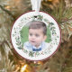 Name Child's Photo Burgundy Christmas Wreath Ornament