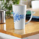 An impressive composition of Cobalt Blue watercolor tropical flowers and leaves, large hibiscus and blue passion flower in center, decorates this 15oz classic latte mug. Large capacity for hot or cold beverages. Easily change name, to text, or remove using the Template provided. See "About This Product" at side for more information and care.