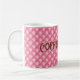 Pink tufted pattern with name and "Coffee Queen" title in elegant dark brown calligraphy decorate this classic 11oz. beverage mug. 15oz size is also available. Easily change text and name to make it yours using the Template provided. See "About This Product" at side for more information.
