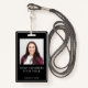 A modern badge ID with your name and title on a black background. .Simply add your photo and information. This version comes with a lanyard, but you may choose your style of attachment that includes, lanyard, metal clip or retractable, or no attachment.