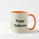 Classic 11oz mug with Happy Halloween and Name on the sides and large candy corn on the front. Choose from 9 other combo colors for the inside and handle. The background is a pearl color. Easily change text to make it yours using the Template provided. Makes a thoughtful personalized gift to enjoy in October. Microwave and dishwasher safe. See "About This Product" at side for more information.