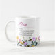 Wildflower mug with custom name definition. The personalization template is ready for you to add your name and your chosen definition, listing 3 attributes which could be true, funny, good or bad. The design features simple watercolor wild flowers in pink lilac yellow and blue. It is lettered with modern retro script and whimsical handwritten typography. Feel free to change the font or background color to suit (click "edit using design tool").