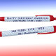 Ideal for gifting to family, friends, business associates, party favors, or promotional giveaways. Flags pattern on light blue background and dark blue "Happy Birthday America" "250 Years 1776-2026" and script name are featured on this trendy black ink pen with red trim. Easily change the name to make it yours using the Template provided. Use the Design Tool to edit font color-size-style and more. Choose your own trim and ink color. Minimum purchase of 2. Made in U.S.A.