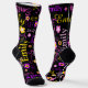 Cute girls socks featuring graphic flowers and your own short name, currently reads Emily printed all over them. A pretty decorative pink yellow purple and white name text and graphic flower pattern on a black background color which can be changed if required. Ideal for personalizing your socks to avoid mix ups. If you require other name lengths please contact me. © Original graphic art and design by Sarah Trett. www.sarahtrett.com for www.mylittleeden.com