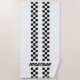 Double checkered stripes towel with colors that are fully customizable. Click customize to change the background color. To change the checkered stripes colors, click customize, select Checkered2.2 layer and change the fill color. It's the perfect towel for a car enthusiast.