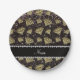 Name gold diamond black glitter paper plates