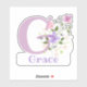 Name Grace plus Initial with Floral Design Sticker