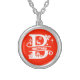 Name / Greeting Monogram Initial B Christmas Red Silver Plated Necklace
