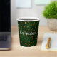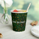 A colorful orange and green crescent moons and tiny stars bokeh pattern background with a "Happy Halloween" greeting on front and name on back decorate these elegant paper cups. Easily change the white text to make it yours, using the Template provided. Dimensions are 3.75"h x 3"d, The cup is 8oz capacity and ideal for cold and warm beverages. Add a lid for a small charge (I think it is worth adding lids). See "About This Product" at side for more information. Printed in USA.