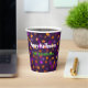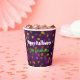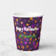 Delightful smiling little Jack o Lantern pumpkins and purple showing through the dark bokeh background, Happy Halloween greeting in white and family or personal name in neon green decorate this cute Halloween party paper cup. Easily change the name using the Template provided. Dimensions are 3.75"h x 3"d. The cup is 8oz capacity and ideal for cold and warm beverages. Add a lid for a small charge. See "About This Product" at side for more information. Printed in USA.