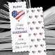 This patriotic heart shape flag scalloped bookmark features name, Happy Birthday America and 250th Anniversary with date in elegant dark blue lettering. The back is a pattern of smaller heart shapes. Change name and text to make it yours using the Template provided. To edit text, change fonts style-color-size and more-- use the Design Tool. Choose from four shapes and two finishes. Printed in the USA. See "About" for more information.