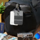 Black stripes on a grey background and white typography initial & name decorate this masculine baggage tag for him. Great quality, sturdy and weatherproof luggage tag, 2-1/2" x 4" for travel or gym duffle bag. Comes with card in slot on back for detail information or insert a business card in the sleeve. Easily change name and initial using the Template provided. See "About This Product" at side for more information. Highly rated product.